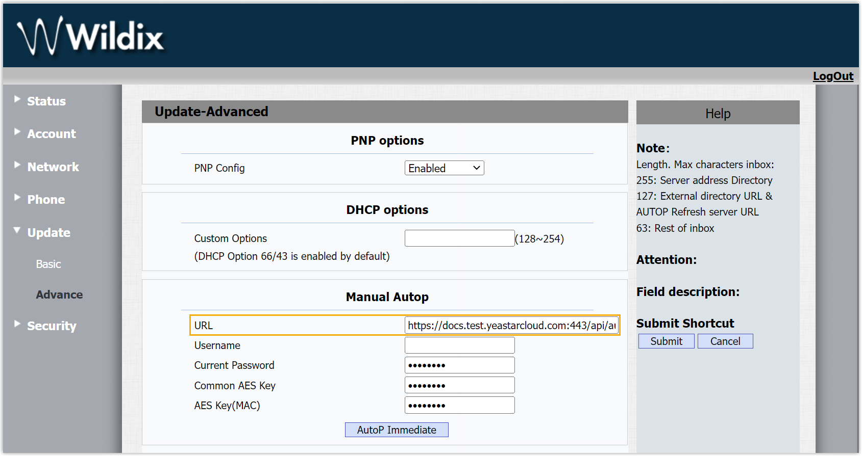 - Manually configure provisioning server for the Wildix IP phone using the provisioning link provided by the PBX.