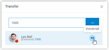 Tip: You can also click the extension user from the matching results to transfer the call.