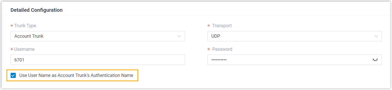 - Added support for using the trunk username as the authentication