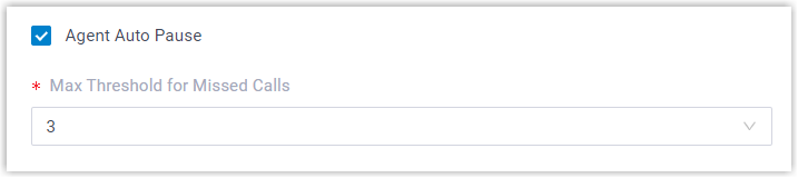 feature (Path: ).If you enable this feature and set a threshold of missed calls, when a queue agent's consecutive missed calls reach the preset threshold, the agent will be automatically paused in the queue, and receive an email notification.Note: This feature takes effect only when the queue's Ring Strategy is NOT Ring All.