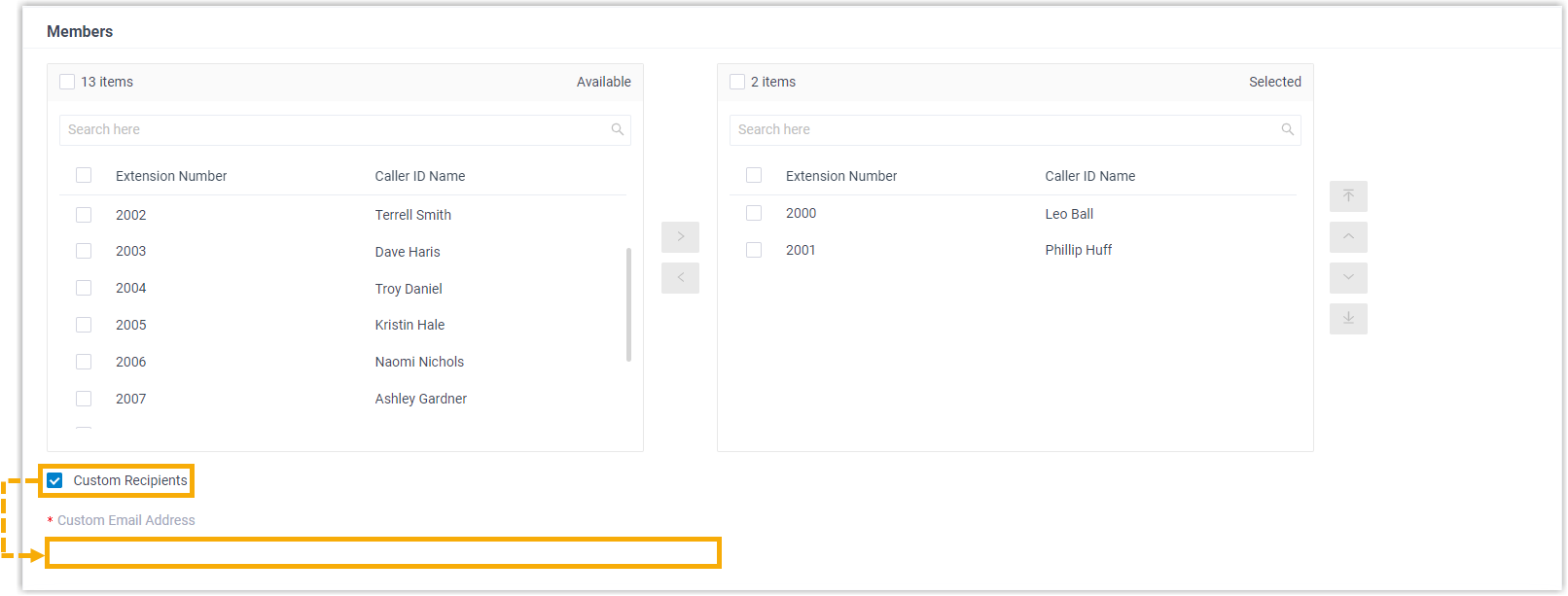 Note: This destination is available in many features, such as extension presence, inbound route, IVR, ring group, and queue.