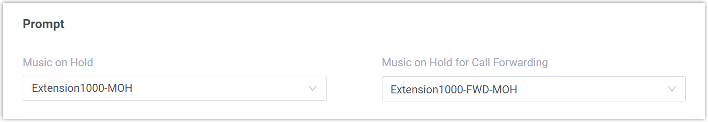 - Music on Hold: Specify the music played when the extension user holds a call.