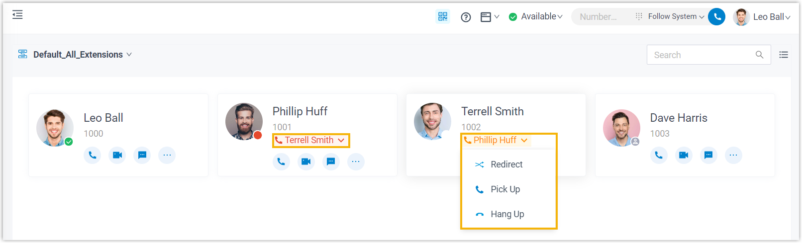 Extension users can instantly see who's ringing or on a call, view caller names and IDs, and manage calls with just a few clicks.