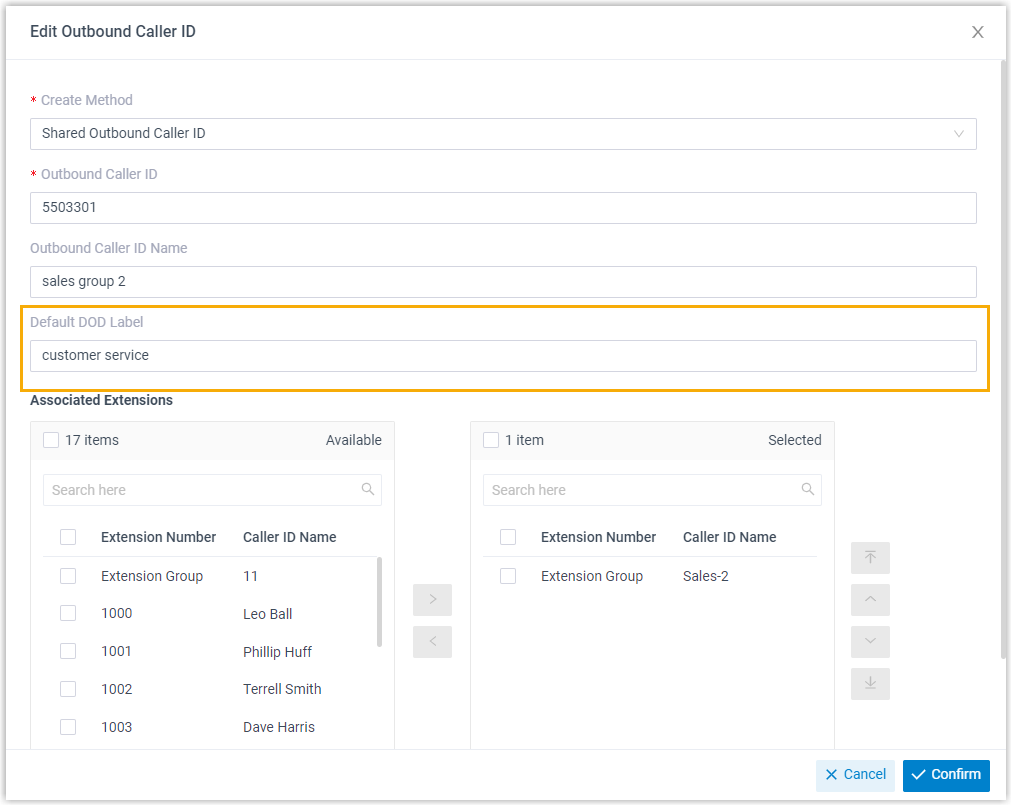 - Added support for setting a default DOD label for outbound caller ID