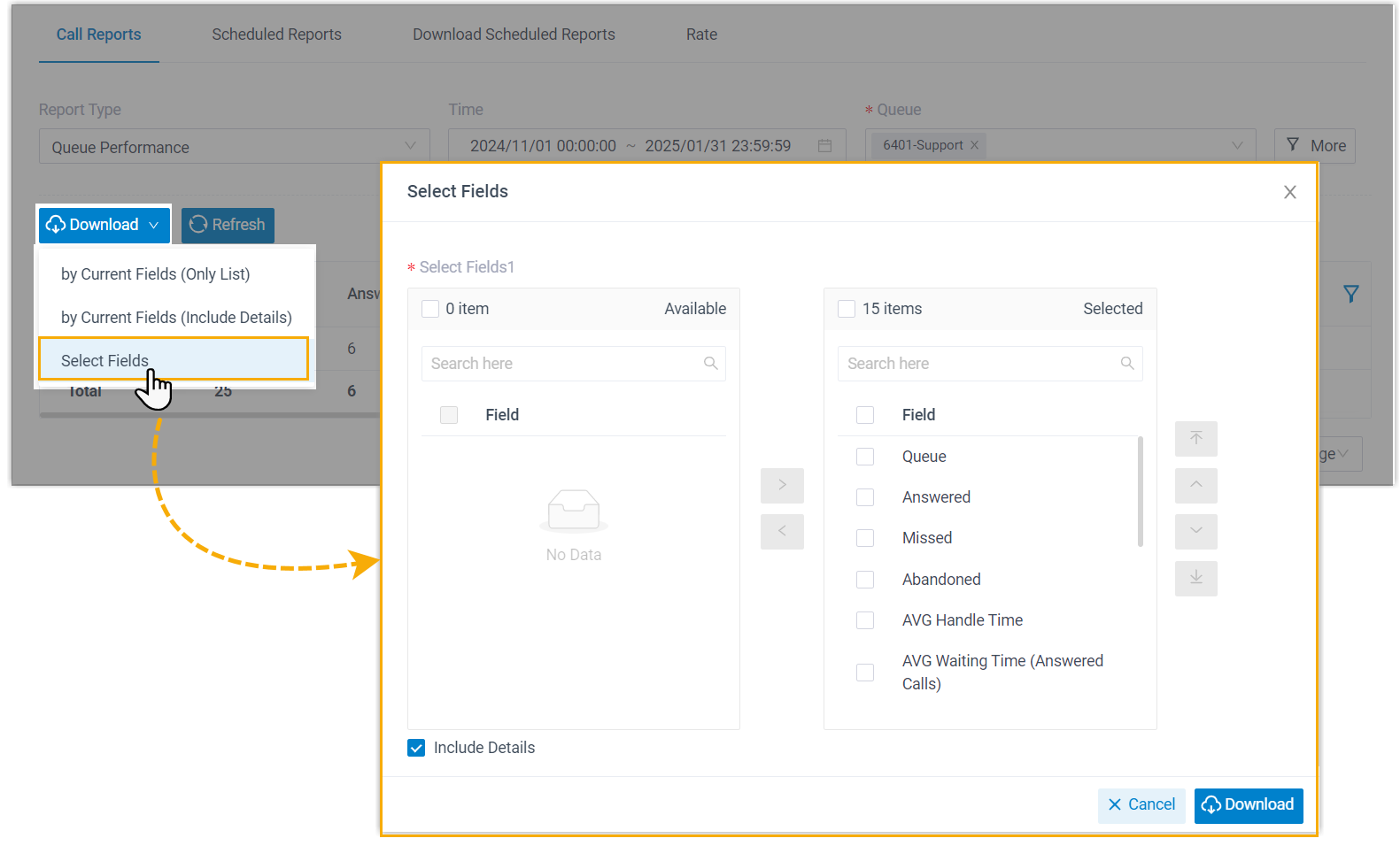 - Added support for filtering display fields when downloading call reports.Note: This feature is only available for the following call reports.