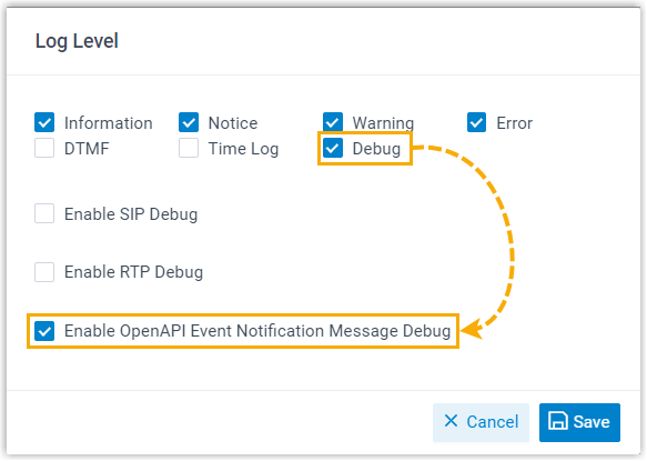 - Added an option Enable OpenAPI Event Notification Message Debug (Path: ). If enabled, messages of API event notifications will be logged for debugging purposes.