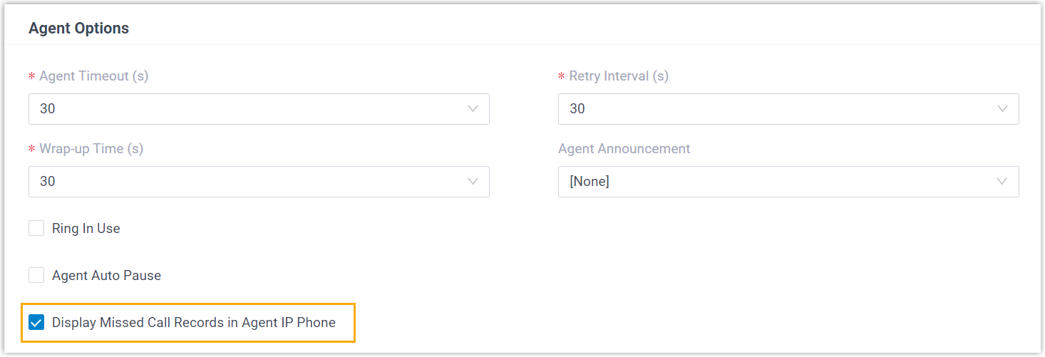 call records of missed queue calls on agents' IP phones.
