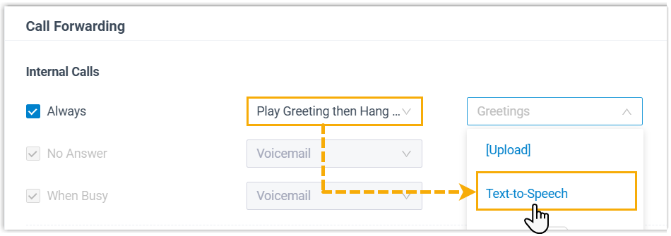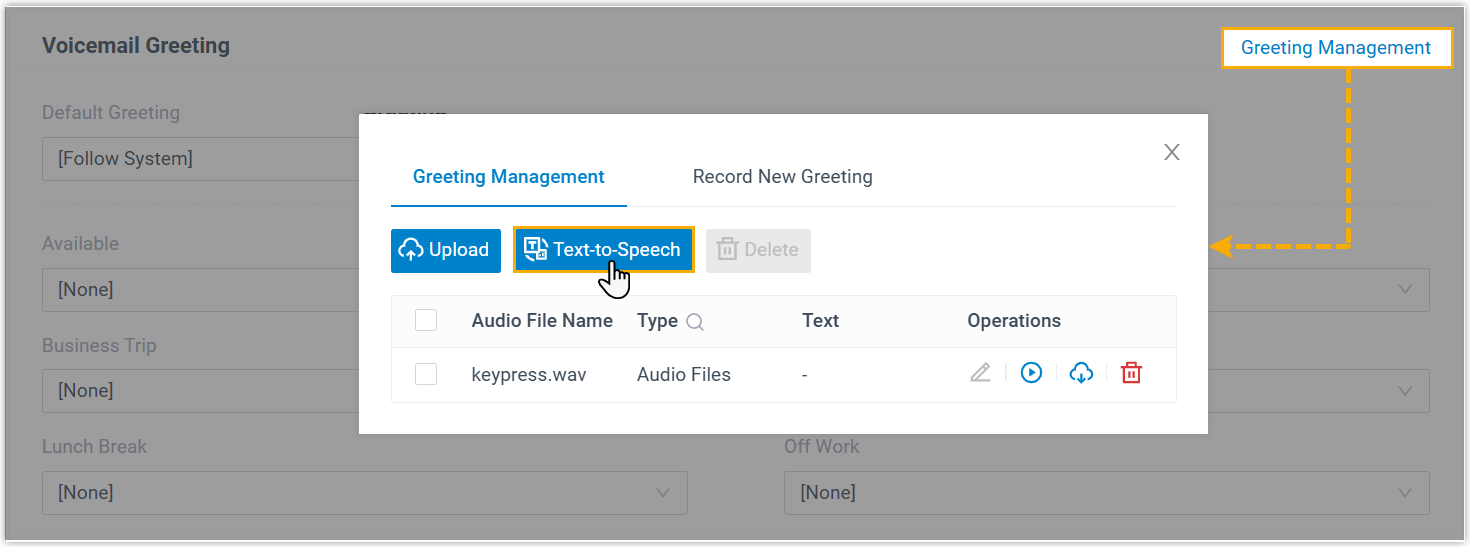 Clients.Note: To achieve this, you need to enable the AI Text-to-Speech feature on the PBX server (Path: ).