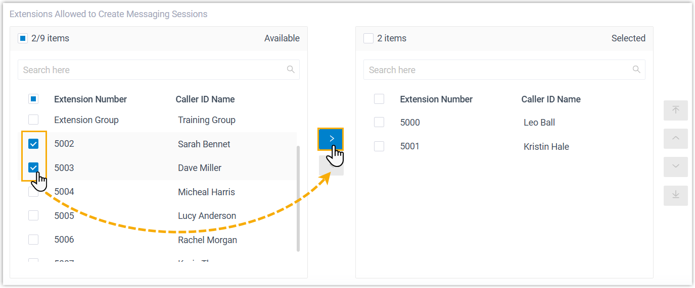 select the extensions that are allowed to initiate a messaging