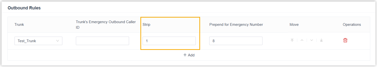Outbound Rules for emergency numbers (Path: ), which can be used to specify the number of digits to
