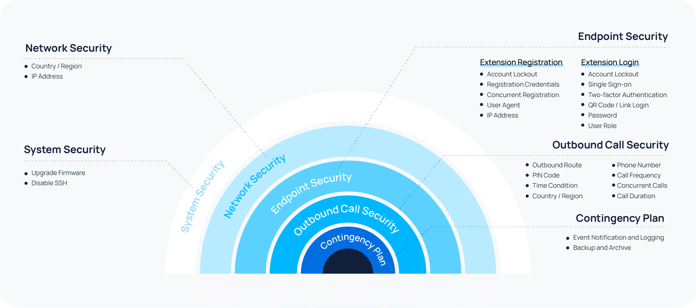 Attacks on PBX system can come from the Internet or telephone lines. Fraudsters always try every means to exploit vulnerabilities to gain access to phone system and make fraudulent calls. As a result, fraudsters take revenues generated from these calls, while you get a costly telephone bill. The Security Guide is intended to elaborate on how to protect your PBX system from security breaches and mitigate the threat of toll fraud.