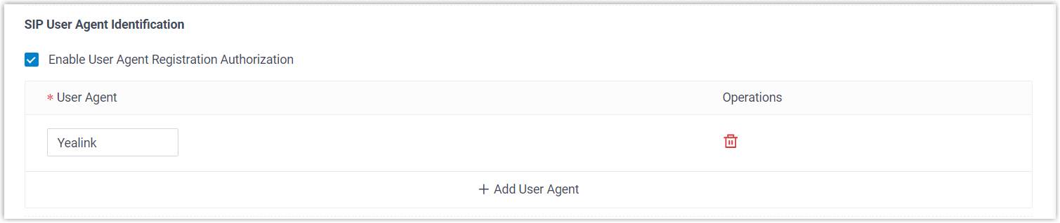 Enable User Agent Registration Authorization, and